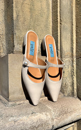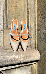 Beautiful shoes in calfskin. Detailed with a fine pearl on the side and a pointed toe.