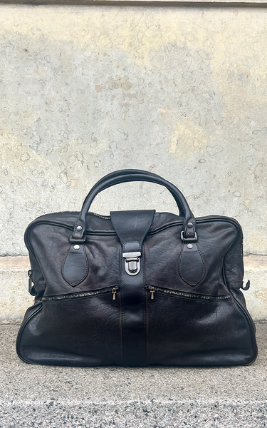 Beautiful bag from Italian Numero10. Numero10 is known for their craftsmanship and quality materials that last a lifetime. The bag is made of soft calfskin in a black washed color. The bag closes with a zipper and has a click button on top, both short straps and for shoulder or cross-body. The bag also has two small zipper compartments on the front and inside the bag itself.