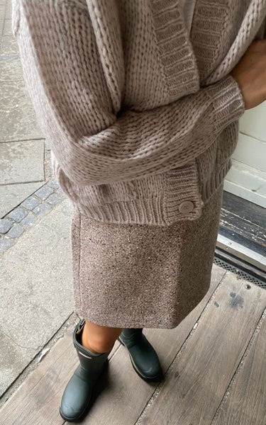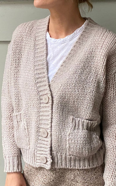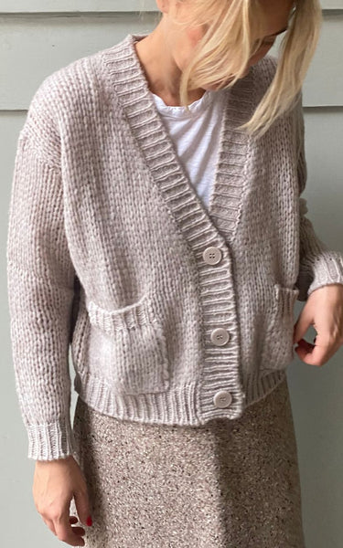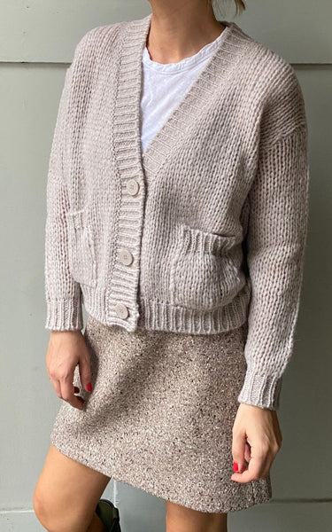 Nice cardigan from Italian Roberto Collina. V-neck neckline, pockets and button closure. The knit is a beautiful beige gray color with undertones of pink.