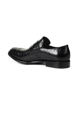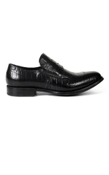 A cool interpretation of the classic loafer - made by Rocco P. They are made in embossed black leather, have a belt across the front and beautiful gold leather inner soles.