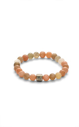 Beautiful handmade bracelet from Alexander Lynggaard, made with moonstone pearls in 8 mm and AL Logo Cube in Oxidized Sterling Silver 925. Suspended on a durable elastic silicone cord that slides easily on your wrist. The moonstone has the healing properties: calm, peace, balance.