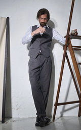 Style with the matching vest, a shirt and a pair of cool shoes or loafers.