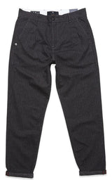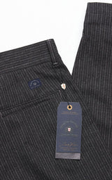 The Bravuomo chino has a unique relaxed fit with roomy legs that taper at the bottom. Single facing front pleats, zip closure and 4 pockets. The cotton blend fabric has an irregular pinstripe which makes the trousers both classic and relaxed.