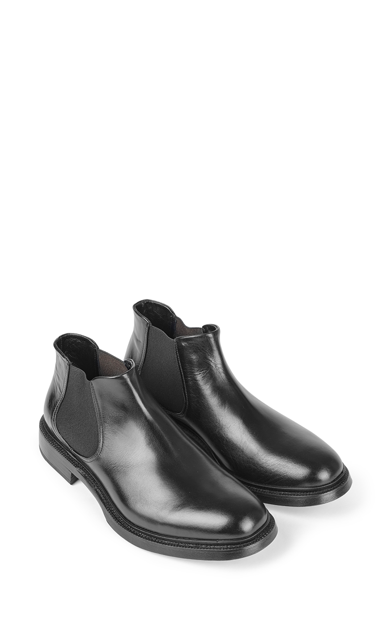 Timeless Chelsea boot in black smooth leather - a must-have in any wardrobe. The classic silhouette with elastic side panels and a round toe gives an elegant and versatile look that is perfect for both formal and casual outfits. A pair of shoes you can always count on.
