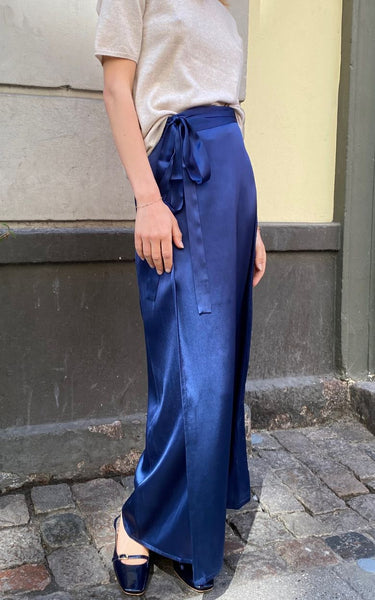 Beautiful navy silk wrap skirt from Italian Roberto Collina.