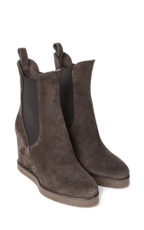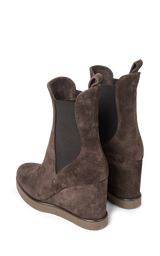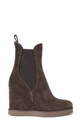 Beautiful and super comfortable wedge heels in brown suede. They have rubber soles and elastic on the sides.