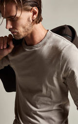 Long Sleeve Crew er lavet i 100% bomuld. Jerseykvaliteten er en ekstremt blød strik, fremstillet ved en særlig behandling af bomuldsfibrene, før de spindes til garn. Designet har en afsluttet rund halsudskæring, lange ærmer og pænt afsluttede kanter. Klassisk pasform. Garment-dyed med ekstra blødgørere for en blød og behagelig, let brugt fornemmelse.