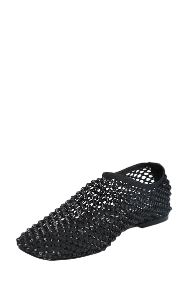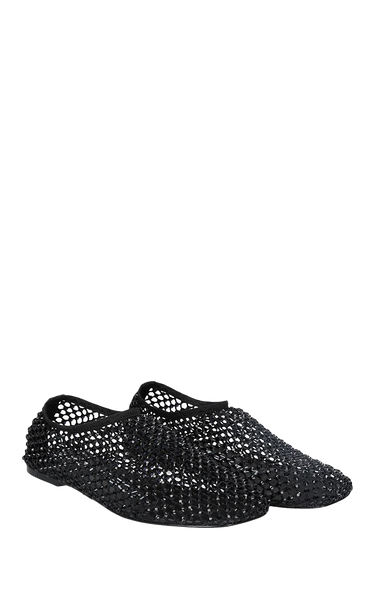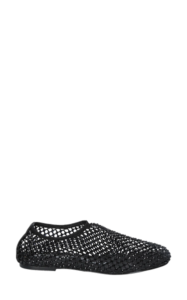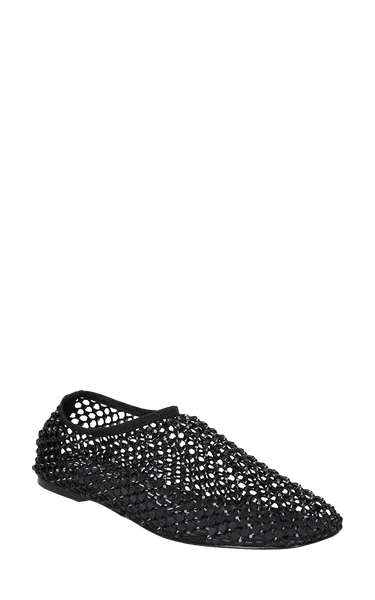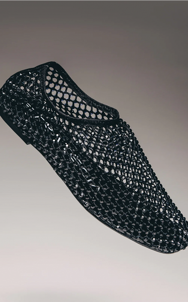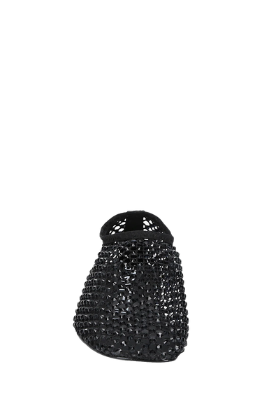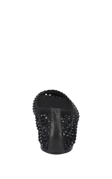 Black Bijoux Ballerina fra Strategia er et koncentrat af gnistre. Dens sorte stofoverdel, fuldstændig dækket af rhinsten, reflekterer hvert lys med en hypnotisk glans. Med sin 5 mm hæl kombinerer den en festlig stil med komfort hele dagen. En tidløs klassiker, der aldrig går ubemærket hen.