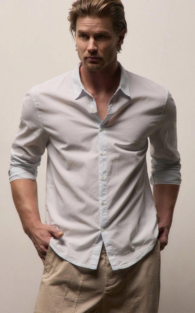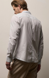 Skjorte i et klassisk og tidløst design, fremstillet i let og åndbar bomuld med en blød og behagelig overflade. Den garment-dyede finish giver et afslappet, let patineret udtryk, som udvikler sig og falmer smukt over tid. Designet er fuldendt med klassisk skjortekrave, knaplukning foran og lange ærmer med manchetter. En praktisk strop i nakken gør den nem at hænge op, mens en midtersøm bagpå tilfører struktur og et afrundet shirttail-hem giver et afslappet finish. En alsidig style, der passer til både hverdag og mere formelle anledninger.