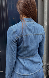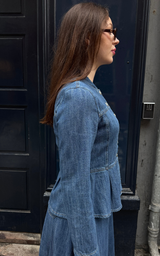 Figursyet denimskjorte i den eksklusive Shaft-kvalitet. Skjorten er designet med seks ikoniske blomsterknapper, der tilfører et feminint og karakteristisk udtryk. Det figursyede snit skaber en elegant silhuet, mens den klassiske denim gør skjorten både tidløs og alsidig. En raffineret denimskjorte, der kan styles alene eller som del af et sammenhængende sæt.