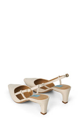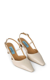 Elegant slingback i glat læder med et enkelt og sofistikeret udtryk. Den spidse snude og fine hæl giver et feminint og tidløst look, mens de slanke remme tilfører lethed og elegance.