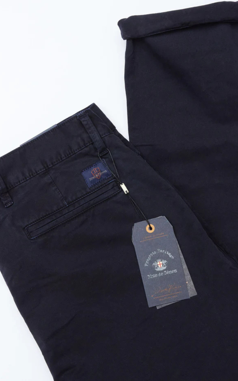 Med sin klassiske silhuet og holdbare kvalitet er Franco Gênes Chino en tidløs og alsidig buks, perfekt til både hverdag og mere afslappet formelt brug.