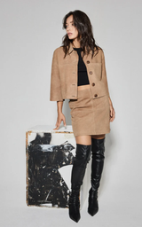 Nederdel i eksklusivt, blødt ruskind designet med fokus på et stilrent og tidløst udtryk. De dekorative syninger og lynlåslukningen tilfører et moderne touch, der fremhæver silhuetten. En alsidig style, der nemt kan dresses op eller ned og bruges til både hverdag og mere formelle anledninger.
