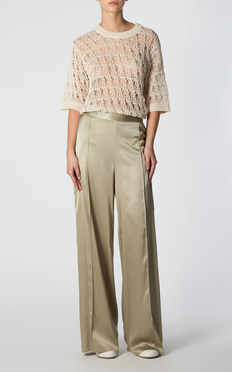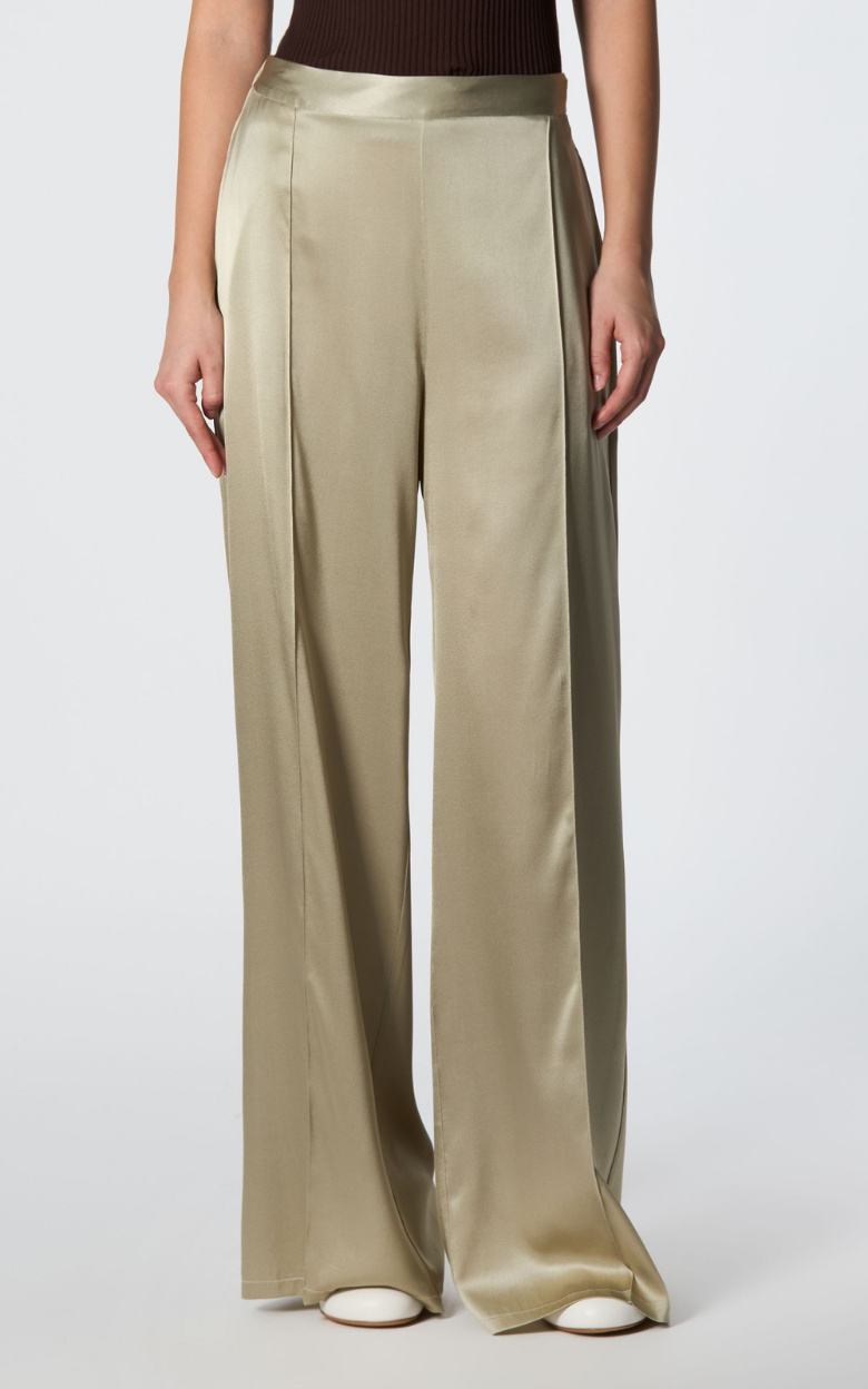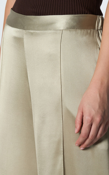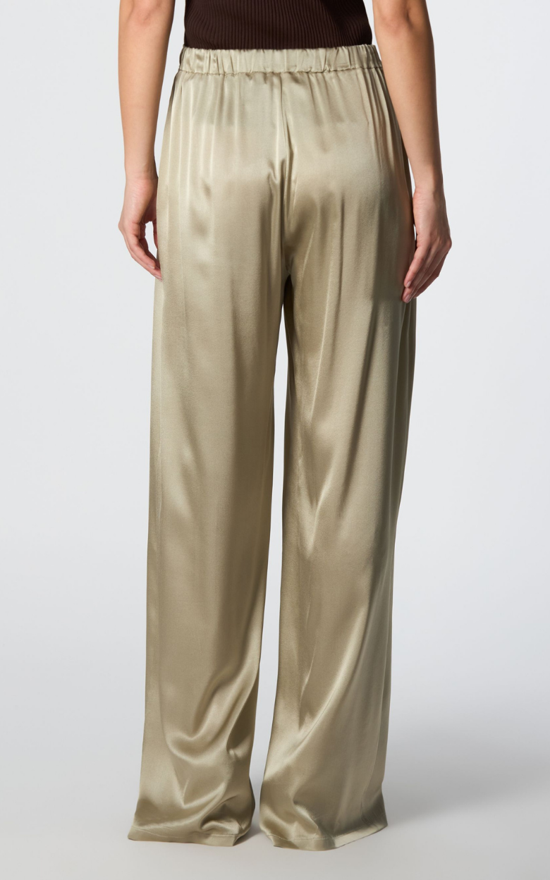 Disse silkebukser fra Roberto Collina har et elegant og afslappet design med vide ben, der giver et stilfuldt og komfortabelt udtryk. Den elastiske linning bagpå sikrer god pasform, og de to frontlommer giver praktisk funktionalitet.