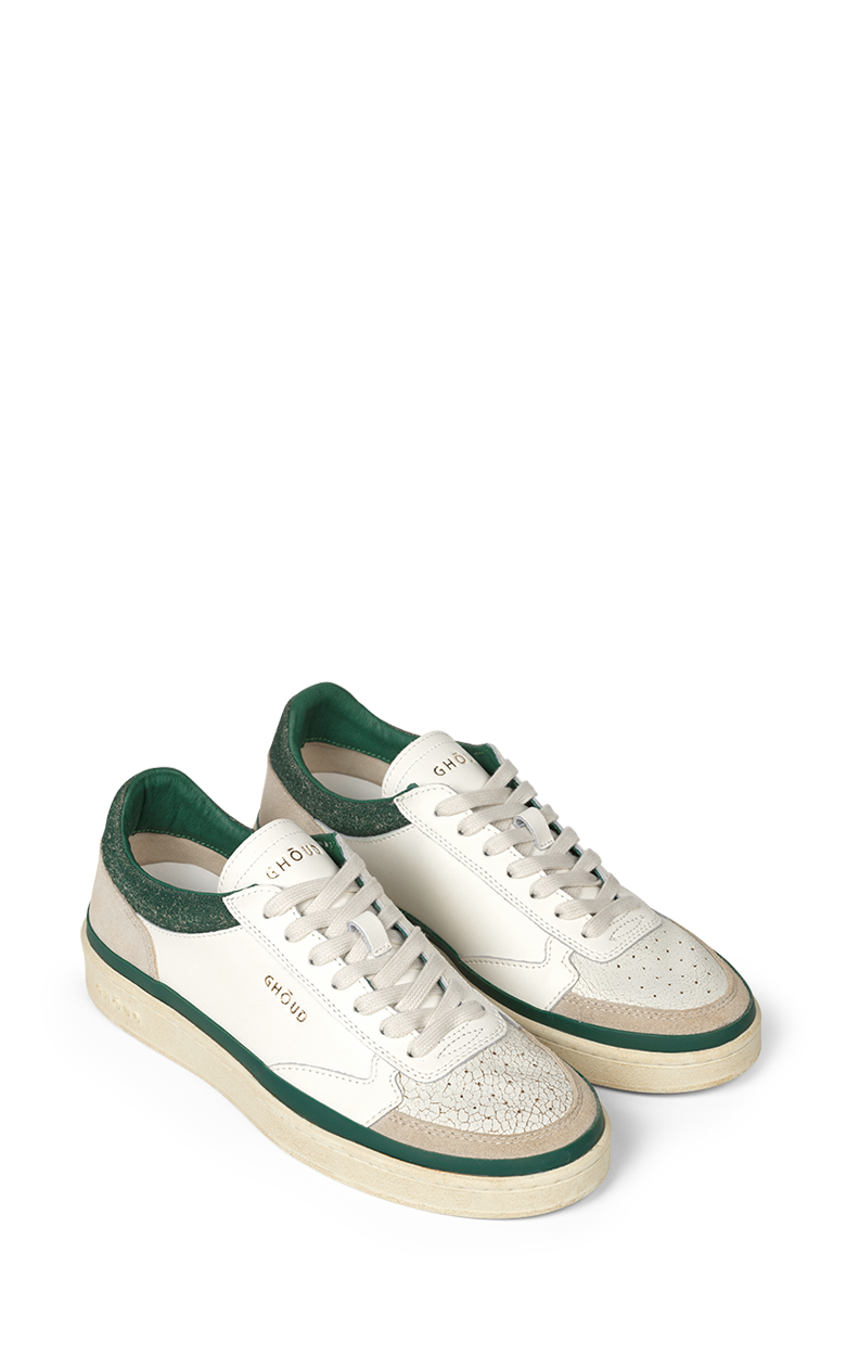 Pads sneakers fra Ghōud i blød hvid læder med moderne design. Skoene har cracked-effect hæl for tekstur og sømløs thermosealing langs sålen.