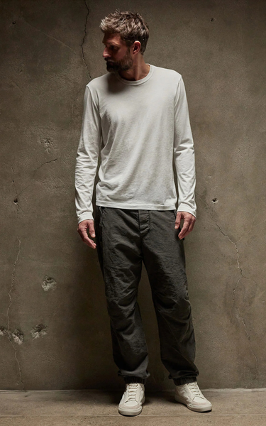 Long Sleeve Crew er lavet i 100% bomuld. Jerseykvaliteten er en ekstremt blød strik, fremstillet ved en særlig behandling af bomuldsfibrene, før de spindes til garn. Designet har en afsluttet rund halsudskæring, lange ærmer og pænt afsluttede kanter. Klassisk pasform. Garment-dyed med ekstra blødgørere for en blød og behagelig, let brugt fornemmelse.