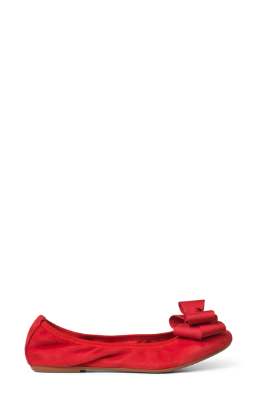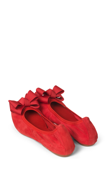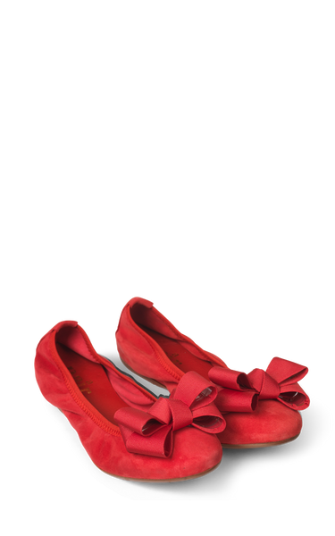Vackra mjuka ballerinor - tillverkade av supermjuk mocka i finaste röda färg och med en stor röd rosett av robust textil. De har mjukaste gummisulorna och läderinläggen.