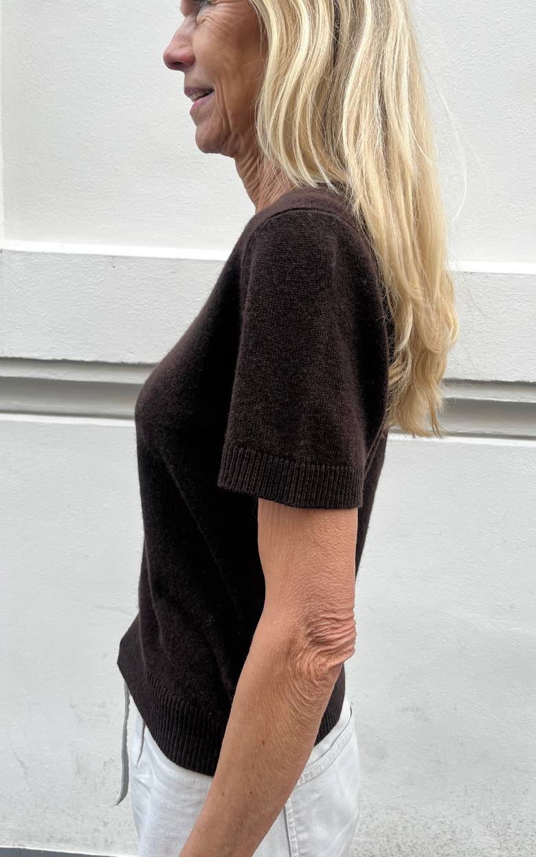 Denna t-shirt i stickat material från Allude är tillverkad av 100 % kashmir och känns extra mjuk och lyxig mot huden. Den klassiska t-shirtformen ger en tidlös och elegant look, vilket gör den enkel att styla för både vardags- och mer sofistikerade outfits.