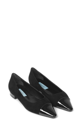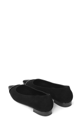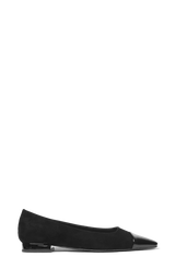 Eleganta skor i svart mocka. Tån är spetsig och i lackskinn som står i vacker kontrast till skons svarta mocka. Den lilla hälen är också i svart lackskinn.