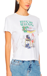 Supercool t-shirt från Re/Done med motiv i fina sommarfärger och citatet 'Tillbaka till verkligheten'.