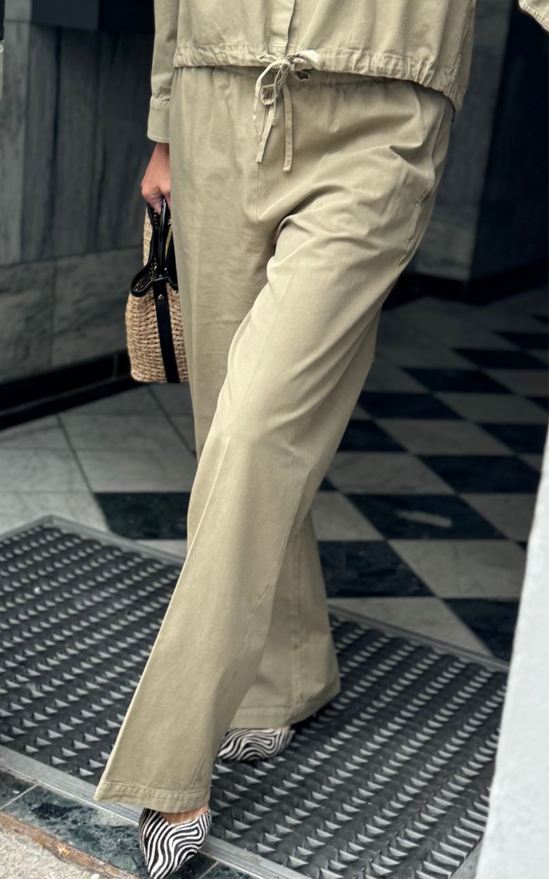 Afslappede bukser fra italienske Circolo i samme bløde kvalitet, der sikrer høj komfort hele dagen. Bukserne har en elastisk talje med snøre, som giver en fleksibel og behagelig pasform.