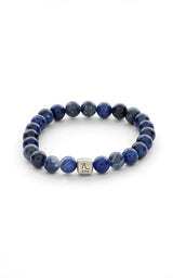 Vackert handgjort armband från Alexander Lynggaard, tillverkat med sodalitpärlor i 8 mm och AL Logo Cube i oxiderat sterlingsilver 925. Spänt på en slitstark elastisk silikonsnöre som lätt glider runt handleden. Sodalit har de läkande egenskaperna: Intelligens, klarhet, emotionell balans.