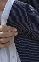 Leopardi Blazer är en perfekt skräddarsydd kavaj med påsydda fickor och sprund i mitten. Tillverkad av den perfekta blandningen av bomull och linne och med en tunn kritstrecksrand – både klassisk och avslappnad. Halvfodrad med en bröstficka, en innerficka och knappar av buffelhorn.