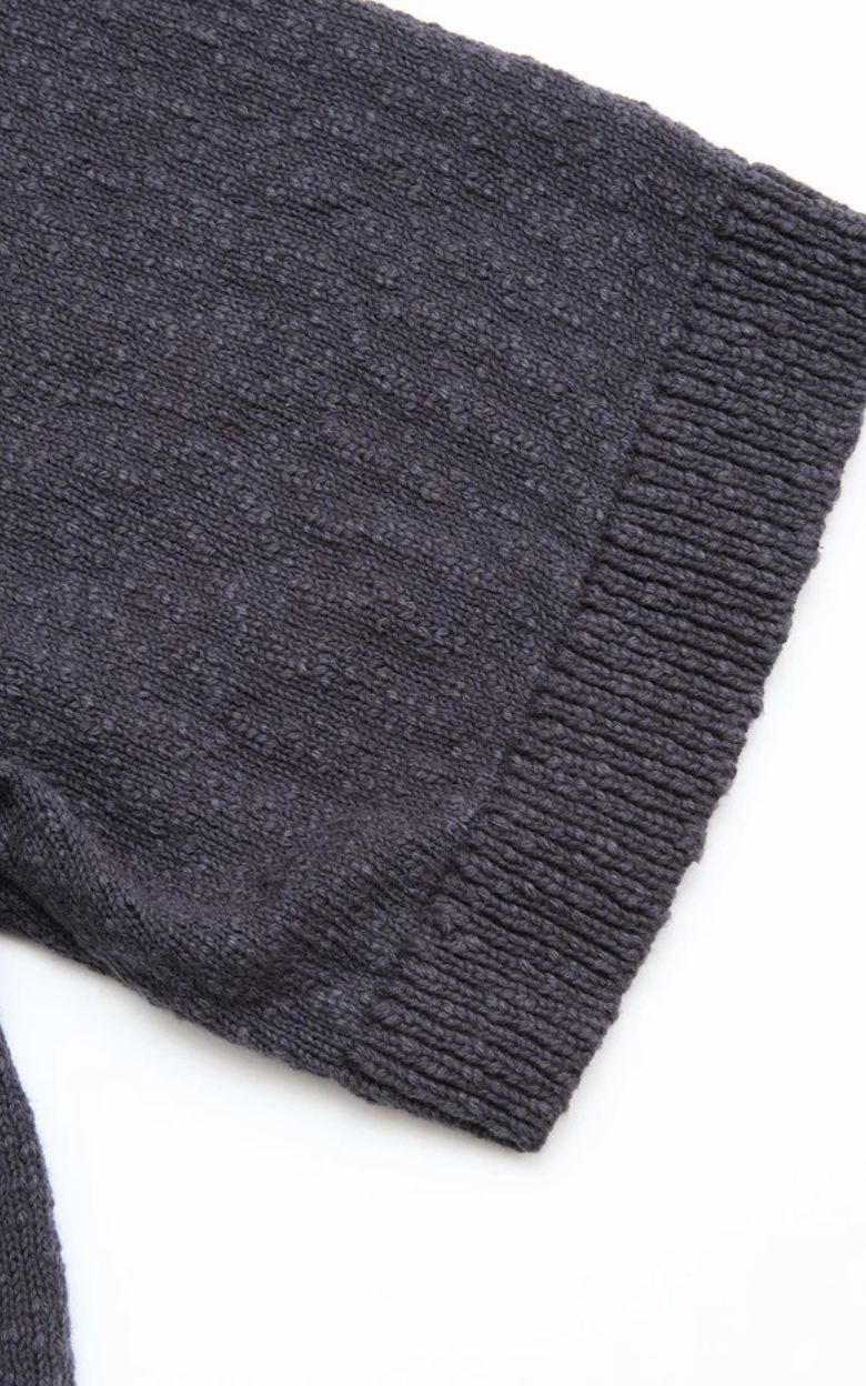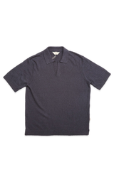En avslappnad och elegant kortärmad stickad tröja med en vintage-inspirerad sportlook. Tillverkad av en texturerad, slubbad 100 % bomullsfiber, vilket ger tyget en naturligt ojämn yta och en mjuk, bekväm känsla. Den något tyngre 7 GG-stickningen ger struktur utan att kompromissa med andningsförmågan, vilket gör den perfekt för övergångskläder och svala sommarkvällar.