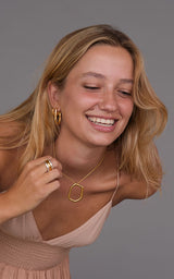 Omfamna den himmelska skönheten med Halo-hänget från Stone Copenhagens Continuum of Time. Detta hänge, med sin cirkulära, halo-inspirerade design och hamrade textur, utstrålar en eterisk charm. Det symboliserar beskydd och gudomlighet och är ett tidlöst smycke som ger en touch av himmelsk elegans till vilken ensemble som helst.