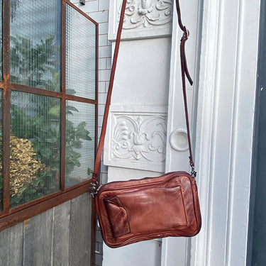 Axelremsväska tillverkad av 100 % lammskinn. Handgjord i Italien av läderhantverkare. Avtagbar och justerbar rem. Innehåller 3 fickor. Mångsidig och rymlig.