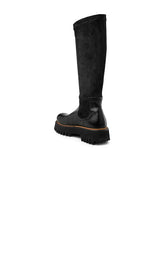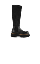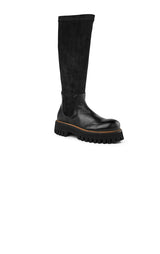Roliga och snygga grova stövlar från Rocco P. Stövlarna är designade i två typer av material. Själva skon är tillverkad av massivt, svart läder och skaftet är tillverkat av mjukt mockatyg. Sulan är utformad för att ge dig hög komfort.