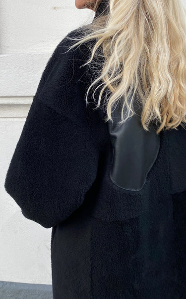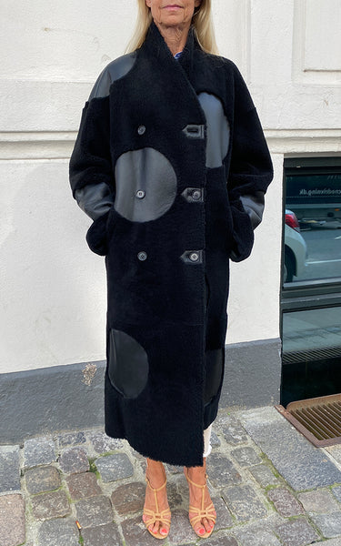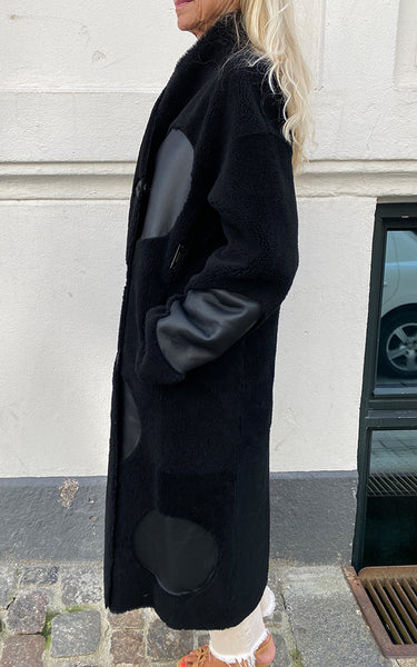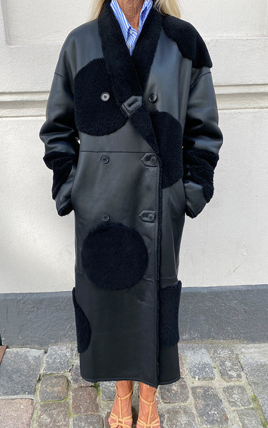 Fantastisk Anne Vest lång oversize vändbar kappa med tyglappar, eller å andra sidan tyg med läderlappar istället.
