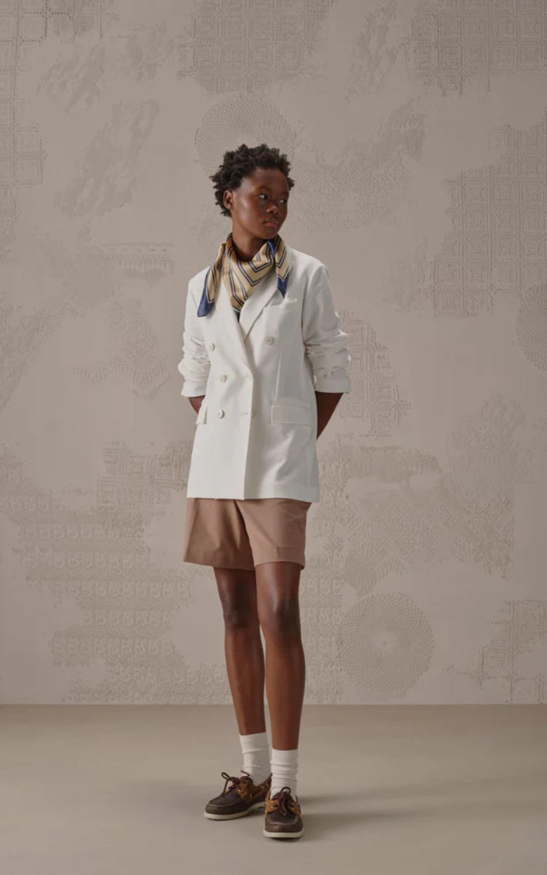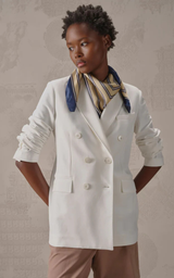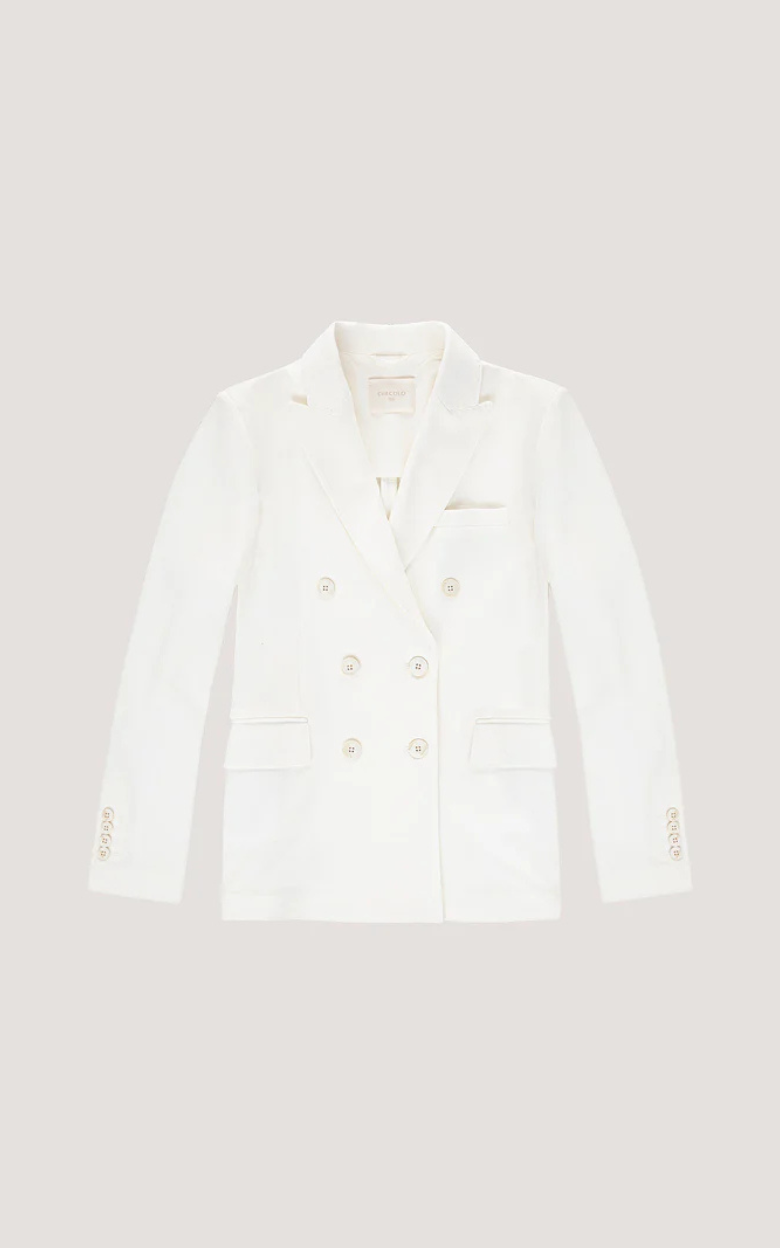 Dubbelknäppt kavaj från Circolo i lätt, plaggfärgad fleece som kombinerar klassisk skräddarsydd stil med komfort. Modellen har eleganta spetsiga slag, dekorativa sömmar och fyrknappsknäppning fram. Designen kompletteras med en bröstficka, två fickor med lock och en sprund bak, vilket säkerställer rörelsefrihet och en sofistikerad look.