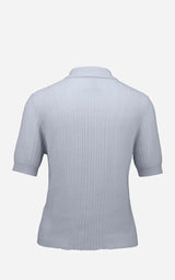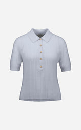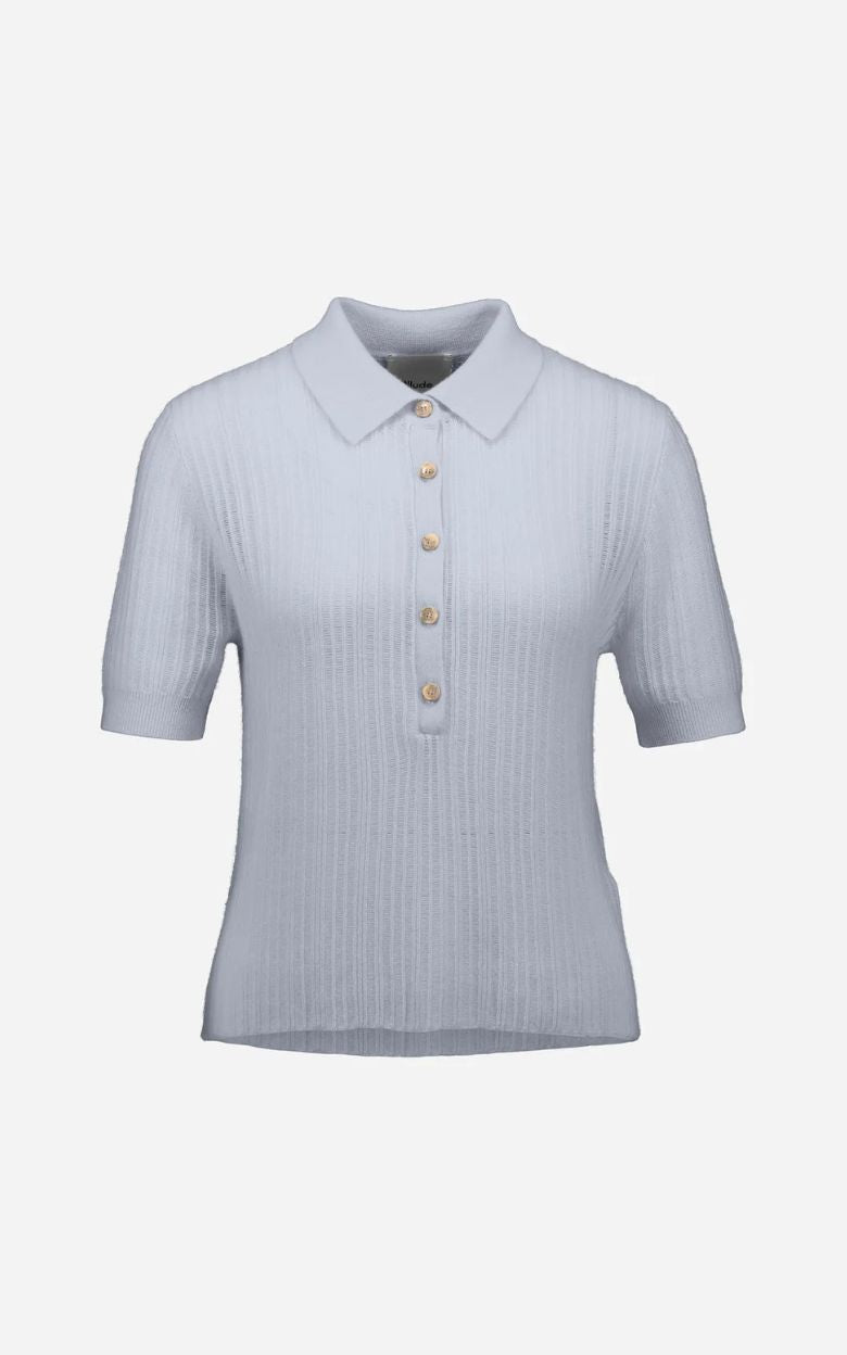 Elegant strikbluse fra Allude i eksklusiv cashmere med et klassisk og sofistikeret udtryk. Den fine ribstrik giver en smuk struktur og en flatterende pasform, mens den lille krave og knaplukningen tilfører et tidløst, poloinspireret look. En alsidig strik, der kan styles både afslappet og elegant – perfekt til både hverdag og arbejde.