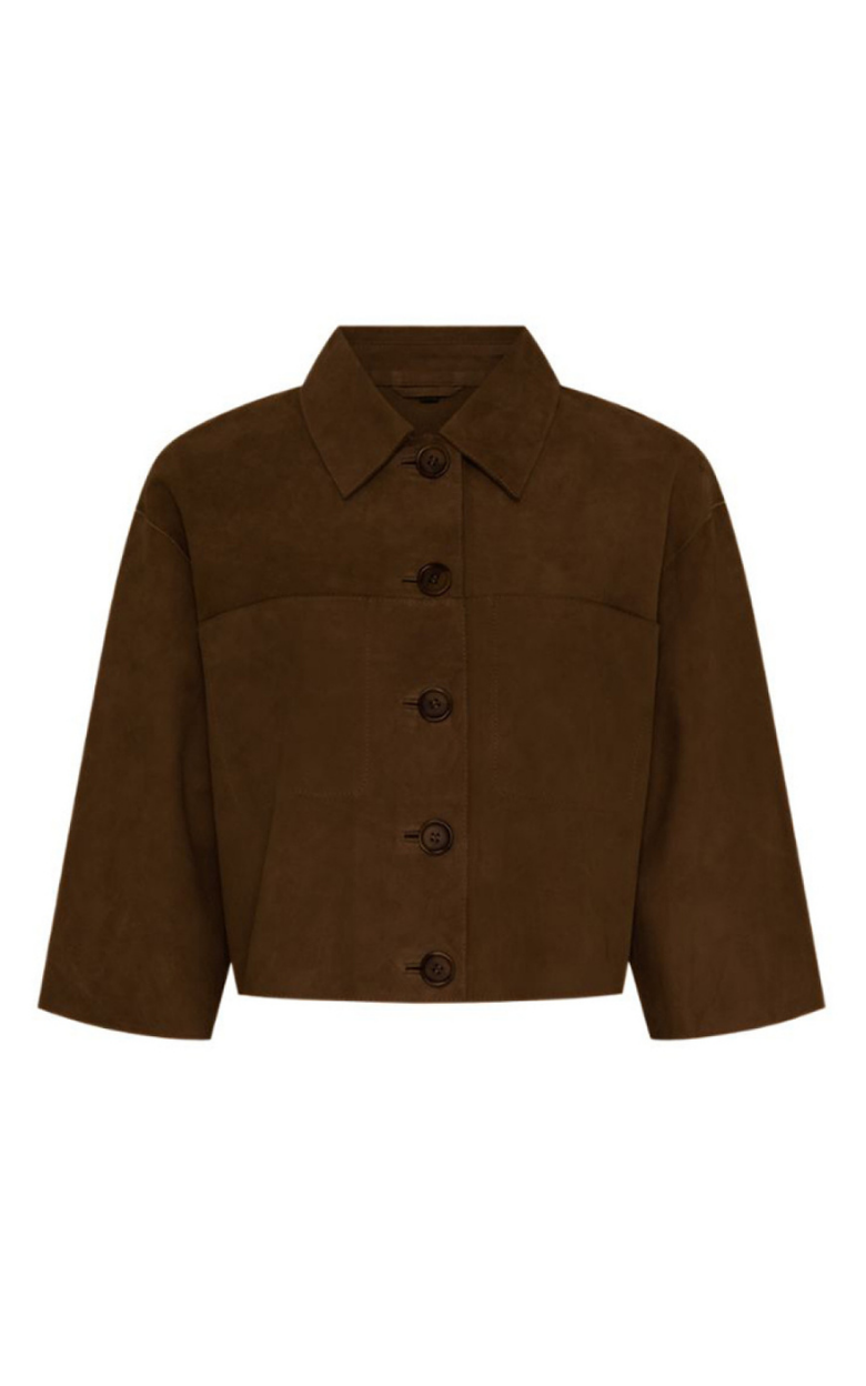 Fräsch och feminin mockajacka från Notyz, tillverkad av den mjukaste getmockan. Jackan har en enkel, klassisk och tidlös skärning med en liten krage, knappknäppning framtill och halvlånga ärmar, vilket ger en lätt och elegant look. Den korta längden gör jackan idealisk över klänningar och högmidjade byxor, där den tillför en exklusiv och avslappnad look. En lyxig mockajacka som enkelt lyfter både vardags- och festgarderoben.