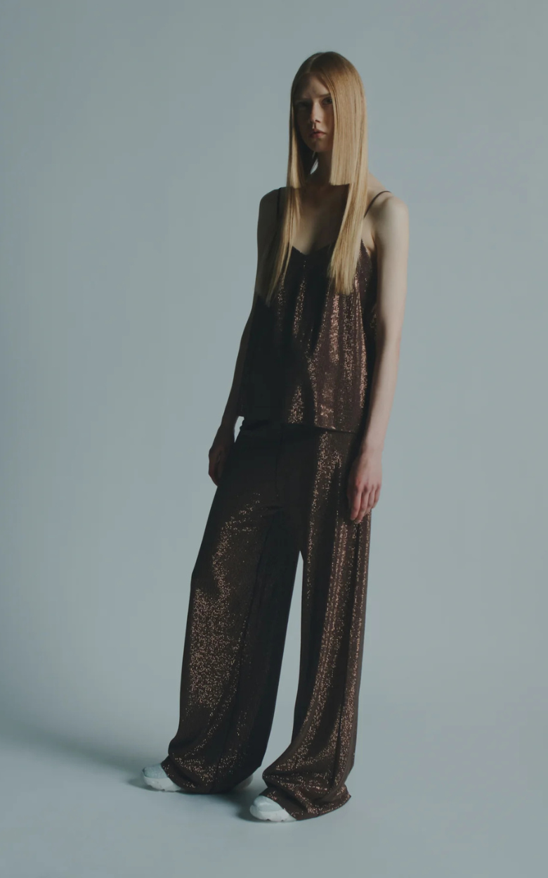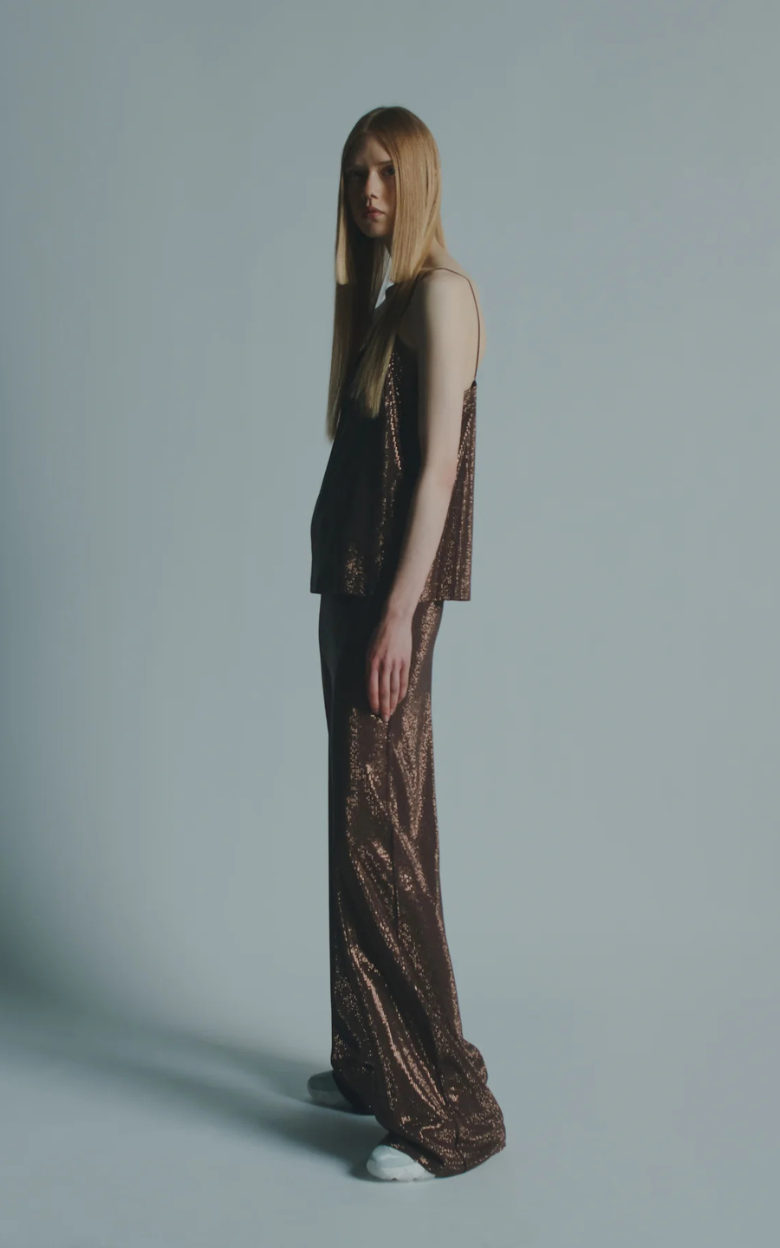 Elegant axelbandslös topp i 100 % viskos med mikronitband ton-i-ton som ger subtil glans och textur. Toppen har en smal passform och når ner till höfterna, vilket skapar en modern och smickrande look. Observera att färgen kan variera beroende på ljuset på bilderna; produktbilderna utan modellen visar den mest korrekta färgen.