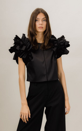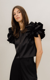 Afrodite är en design från Urban Pioneers premiumkollektion Atelier, skapad för att bli din för alltid – ett fantastiskt plagg perfekt för oförglömliga kvällar, sofistikerade kvällar och när du vill göra ett dramatiskt intryck. Denna iögonfallande satinjacka/blus med voluminösa, lekfulla volangdetaljer är tillverkad av ett lyxigt material med en silkeslen känsla som säkerställer att du drar till dig uppmärksamhet med varje rörelse. Denna iögonfallande stil kombinerar komfort med oemotståndlig elegans och ger en utsökt touch av glamour till vilken outfit som helst.