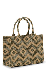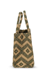 Denna vackra Luna Moon-väska i en vacker olivgrön färg är tillverkad av 50% jute, 40% ekologisk bomull och 10% viskos. Inuti hittar du 3 fickor - en av dem stängs med dragkedja. Fodret är tillverkat av 100% bomull. Dustbagen är också tillverkad av 100% bomull.