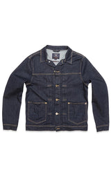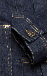 Blue De Genes tolkning av en klassisk westernjeansjacka med veckad framsida och normal passform som erbjuder både stil och komfort. Tillverkad av 285 g komfortdenim och sköljtvättad för en mjuk men slitstark känsla, är den självklarheten för diskret sofistikering.