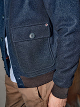 En klassisk bomberjacka, designad för att hålla dig varm och snygg under de kallare månaderna. Jackan är tillverkad av en kraftig dubbelsidig ullblandning, vilket garanterar värme och hållbarhet.