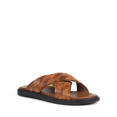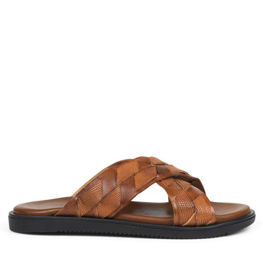 Vackra sandaler i cognacfärg med korsade läderremmar och gummisula. Mycket bekväm passform och mjuk känsla.