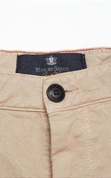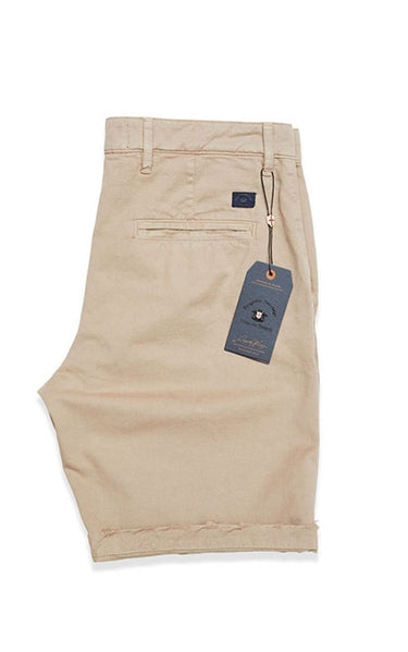 En riktig klassiker – kakifärgade bermudashorts. De stängs med dragkedja och knapp. Dessutom har de två framfickor, två bakfickor och bälteshällor.