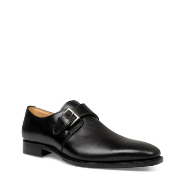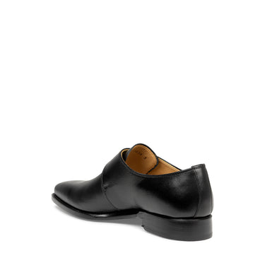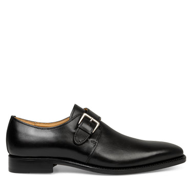 Eleganta skor i svart mjukt läder med ett fyrkantigt silverspänne.