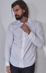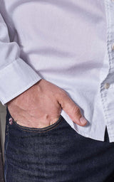 Miguel Brilliante-skjortan är tillverkad av ett mjukt italienskt 100 % bomullstyg och har en normal passform med en utskuren krage, en lätt rundad fåll och knappar av Corozo-nöt. En snygg skjorta har förmågan att vara både charmig och mångsidig. Perfekt för alla tillfällen eftersom den kan kläs upp eller bäras avslappnat. Som en subtil detalj är kragen, knappslåen och manschetterna tillverkade av ett kontrasterande tyg.