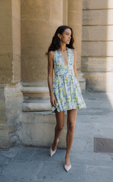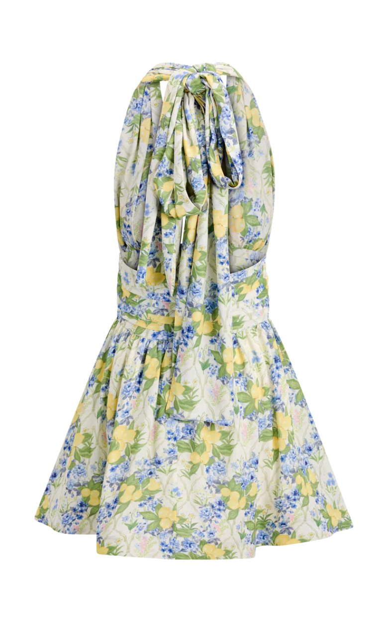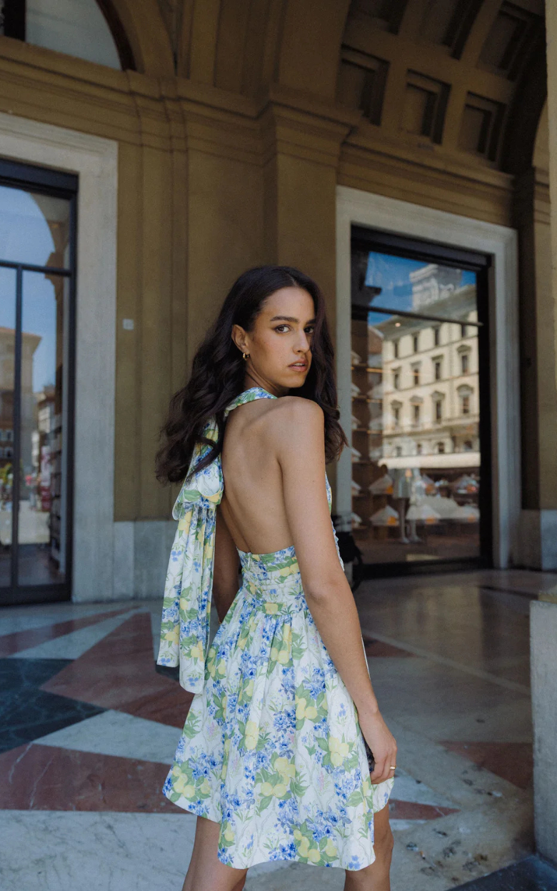 Liora är en lekfull miniklänning designad för att sticka ut med självsäker sommarenergi. Klänningen har en elegant halterneckringning och öppen rygg, vilket skapar en lyft och feminin silhuett. Den lätt rynkade kjolen ger rörelse och volym, vilket ger en luftig och somrig look. En lätt och mångsidig klänning, perfekt för varma dagar i stan såväl som helgdagskvällar.