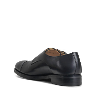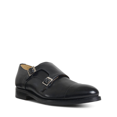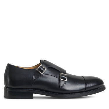Denna svarta lädersko från Cordwainer är designad med två silverfärgade spännen och en rund tå.