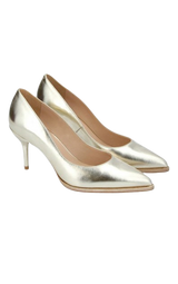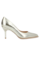 En vacker och klassisk guldfärgad stilett med en resolut feminin design. Tillverkad i Frankrike, du kommer att älska deras spetsiga tå och tulpanformade stilettklack. Den breda kanten på tån gör dem stabila, slitstarka och fulla av karaktär.