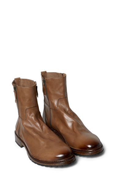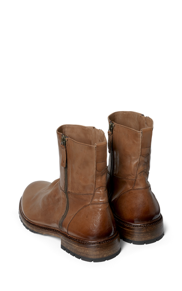 Vackra stövlar med två dragkedjor i brunt läder. De har lädersulor täckta med gummi i framfoten och hälen, så de är perfekta som en sval vinterstövel.