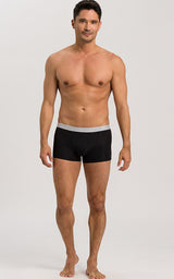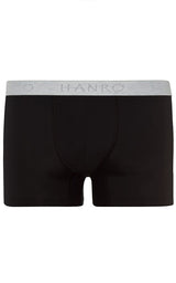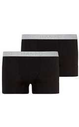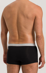 HANRO Cotton Essentials 2-Pack Boxer Briefs är enkla och sportiga, perfekta basplagg för vardagsbruk. De finns nu i svart och är tillverkade av finstickad merceriserad bomull blandad med en touch av elastan för stretch. Slim fit, i en klassisk trunk-design med fodrad ficka och mjuk resår i midjan, präglad med HANRO-logotypen.
