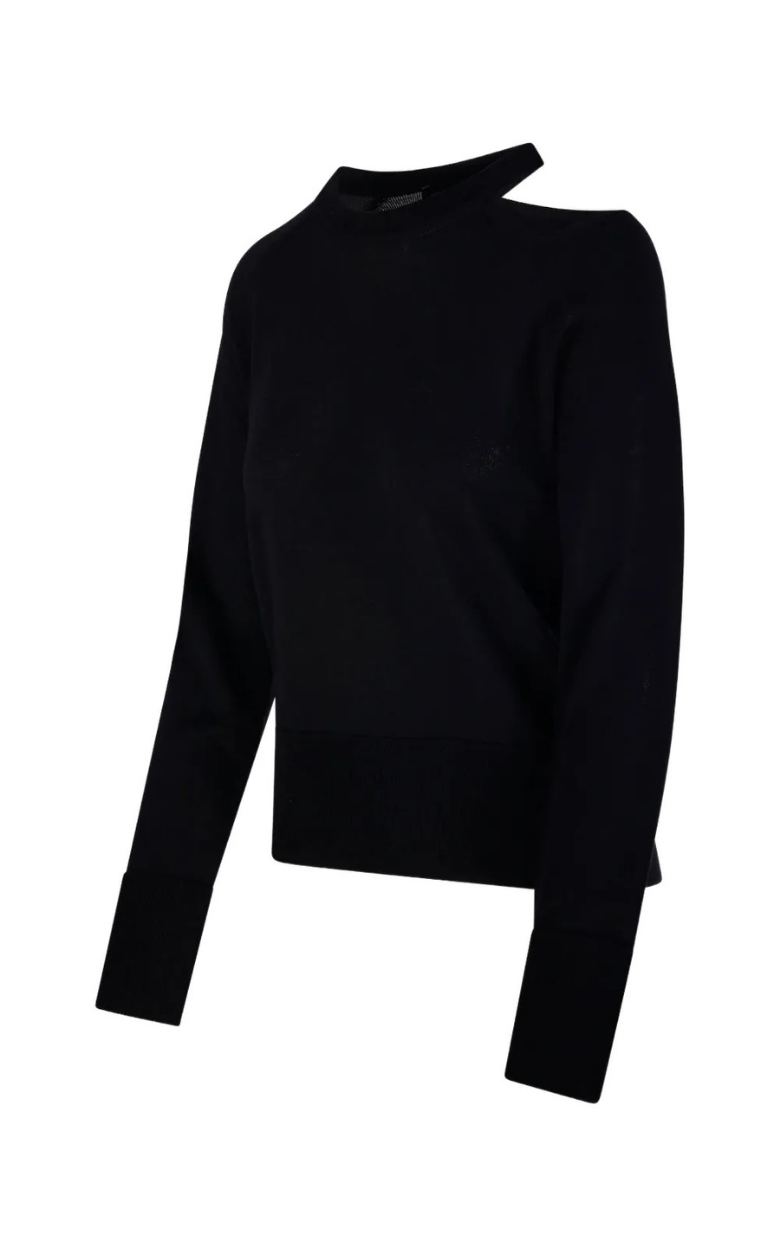 Denna utskurna tröja från Roberto Collina är tillverkad av 100 % ull och tillverkad i Italien. Tröjan har en rund halsringning och eleganta utskurna detaljer på axlarna, vilket ger en snygg och modern look. De långa ärmarna och den ribbade nederkanten fulländar designen på ett tidlöst sätt.